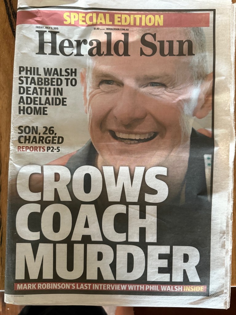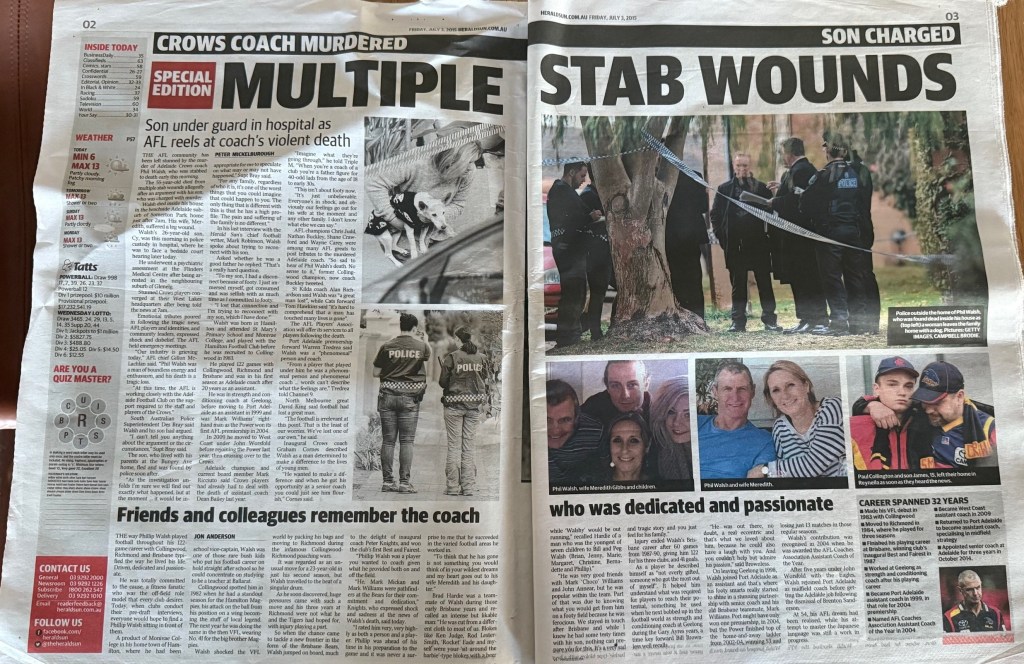 It was by chance that I was over in Melbourne for a week with the family on a cultural holiday, looking forward to the Collingwood-Hawthorn game that night, and come the Friday morning, we turn on the TV in the hotel and flashing across the screen is the most unbelievable piece of footballing news we’ll ever see… the head coach of an AFL club had been murdered, by his own son, in his own home.