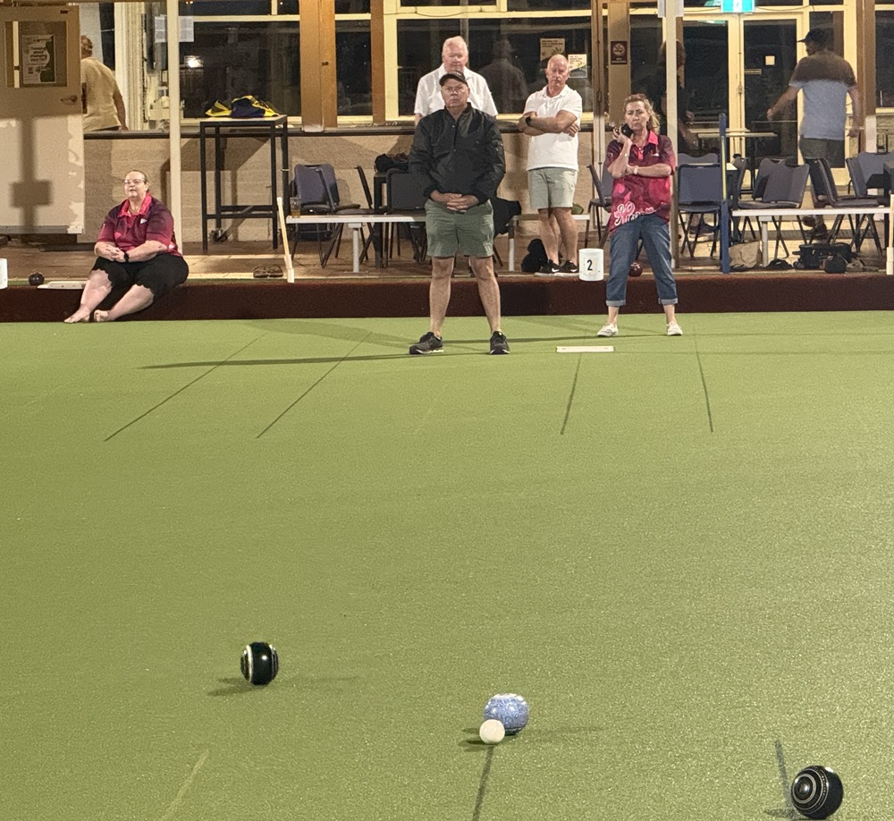 While Manning Up did that, the last game on Rink 1 between Salty Bowls and Rock N Bowl was described by Manning Up’s micromanager John, who stayed back to score the game, as “Social bowls at its best”, with two young teams going blow for blow over 5 ends as the Salties came from 2-5 down (After blowing their own powerplay) to pick up 4 and lead 6-5 with an end to play, and they had the game won until the very last bowl, when our reigning Mitchell Trophy winner Luke of Rock N Bowl came through and picked up the jack to make 2 on a last end powerplay, giving Rock N Bowl the win 9-6 and keep the young Salties winless’ run going under the cruelest of circumstances.