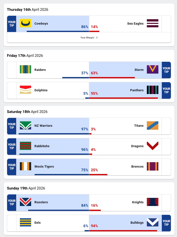 You know it’s a worry when I scored 2/8 last week and was still in the top half of tipsters… it was a massacre in Round 6.