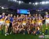 McGovern and Barrass pull their pants up, and Fremantle have theirs pulled down.